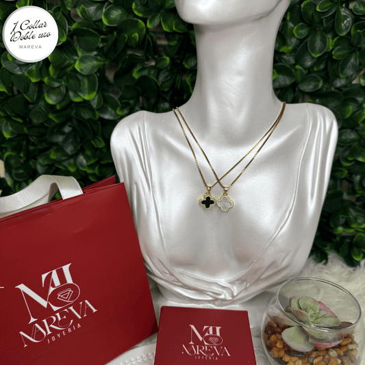 COLLAR TREBOL DOBLE USO NEGRO Y BLANCO (Estilo VAN CLEEF)| ENVÍO GRATIS