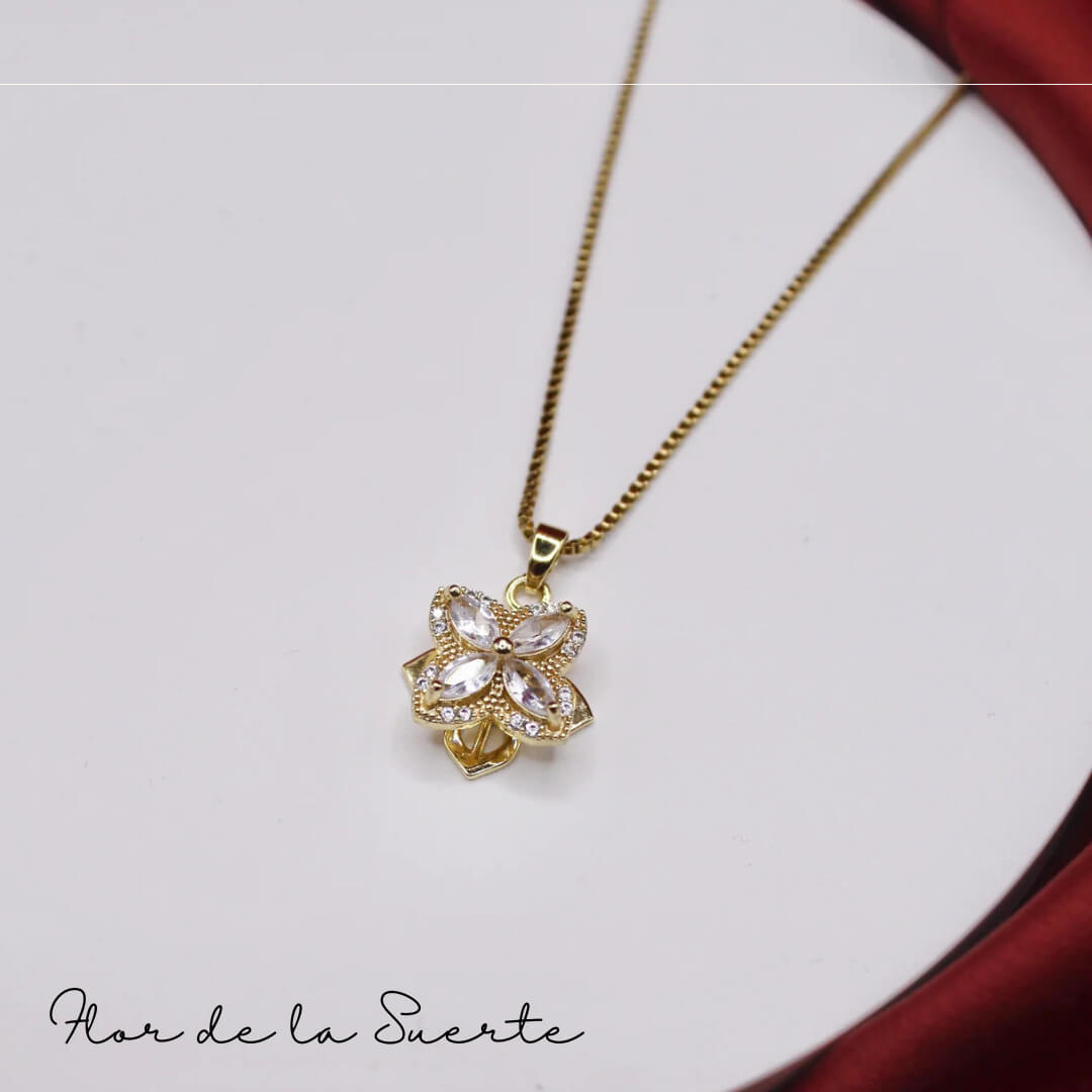 Déjate cautivar por la magia del Collar Flor Giratoria, una joya única que combina elegancia, movimiento y sofisticación.